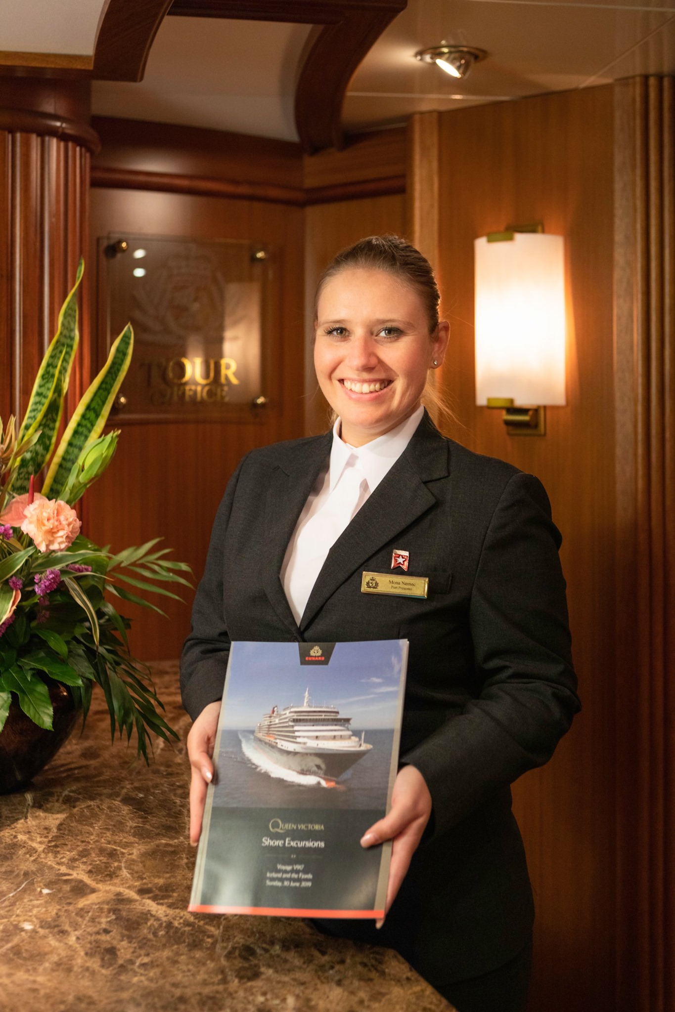O Guest Services Officer é o representante direto da hospitalidade a bordo e tem como principal função garantir a satisfação dos hóspedes. Ele atua no balcão de recepção, sendo responsável por processos como check-in, check-out e controle de contas de bordo. Fornece informações sobre excursões, serviços e atividades disponíveis no navio, mantendo-se sempre bem informado e cordial. Também é encarregado de registrar e resolver reclamações, atuando com empatia e profissionalismo.